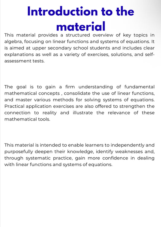 Algebra – WORKBOOK on Linear Functions and Systems of Equations | GRADE 7–10