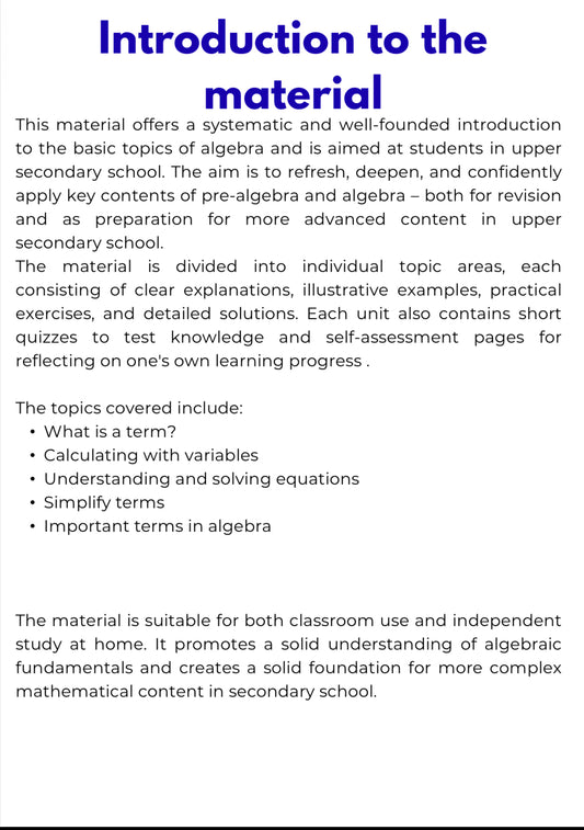 Algebraische Ausdrücke – Mathematik SEK I