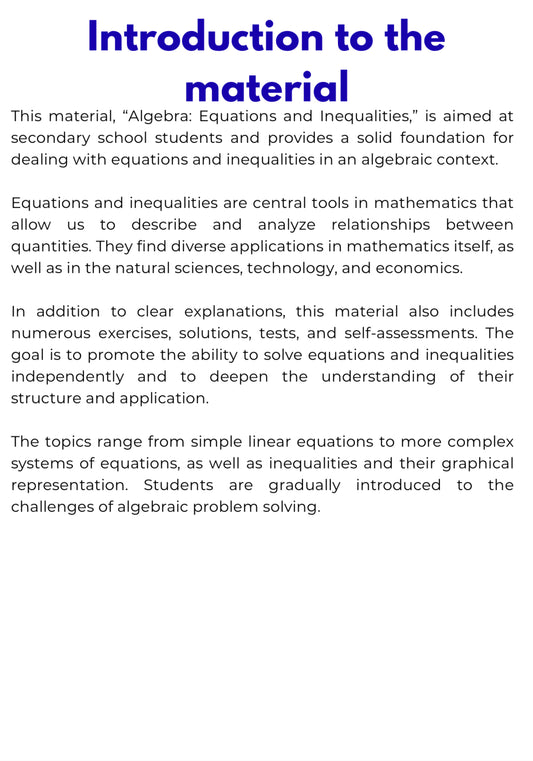 Algebra – WORKBOOK on Equations and Inequalities | GRADE 5–9