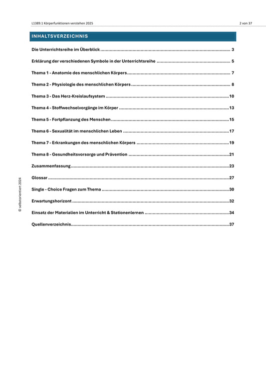 Anatomie & Stoffwechsel des Menschen - Unterrichtsreihe