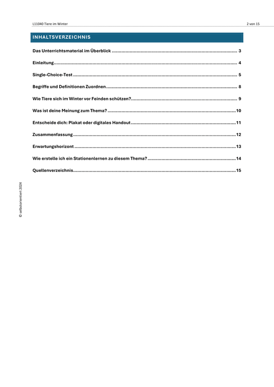 Tiere im Winter - Unterrichtsreihe Sekundarstufe I