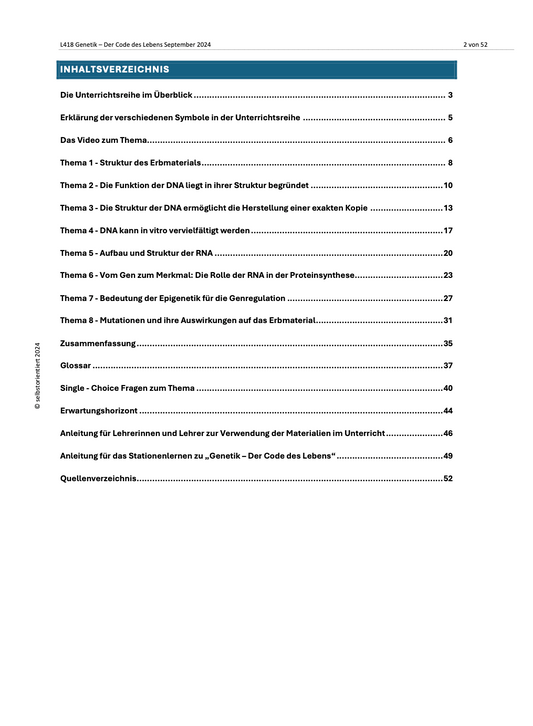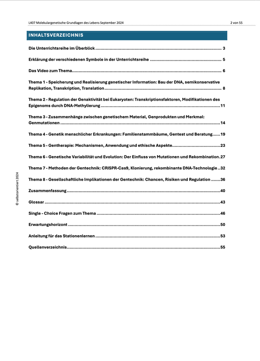 Epigenetik, Zellalterung, Genregulation - Unterrichtsreihe