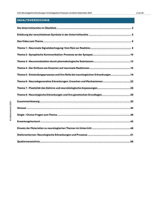 Neurologische Erkrankungen und biologische Prozesse - Unterrichtsmaterial