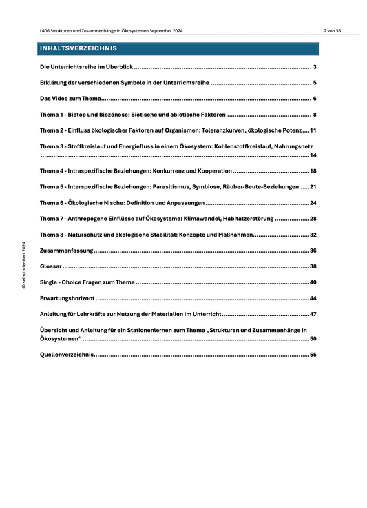 Strukturen und Zusammenhänge in Ökosystemen - Unterrichtsmaterial
