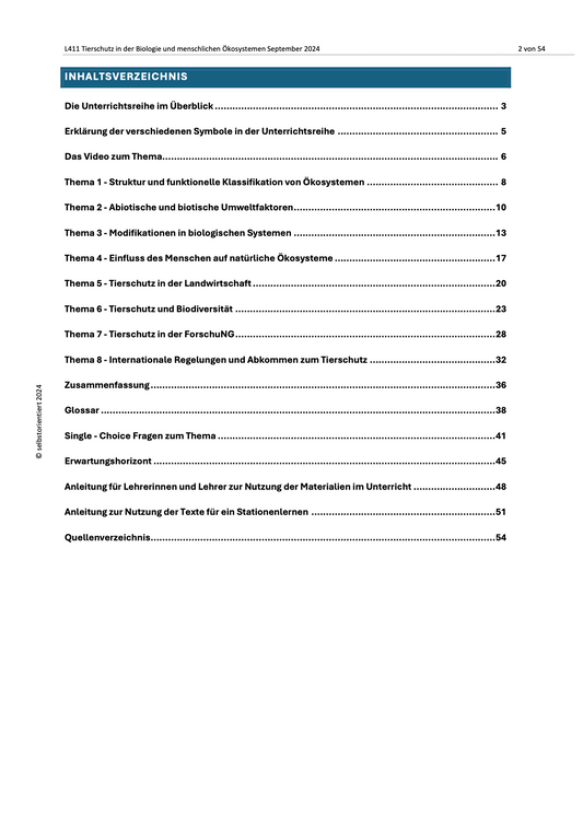 Tierschutz in der Biologie und menschlichen Ökosystemen - Unterrichtsmaterial