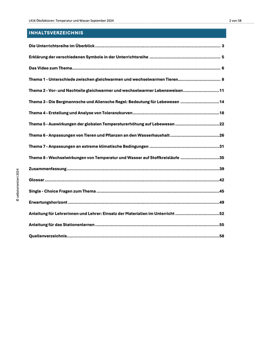 Ökofaktoren: Temperatur und Wasser - Unterrichtsmaterial