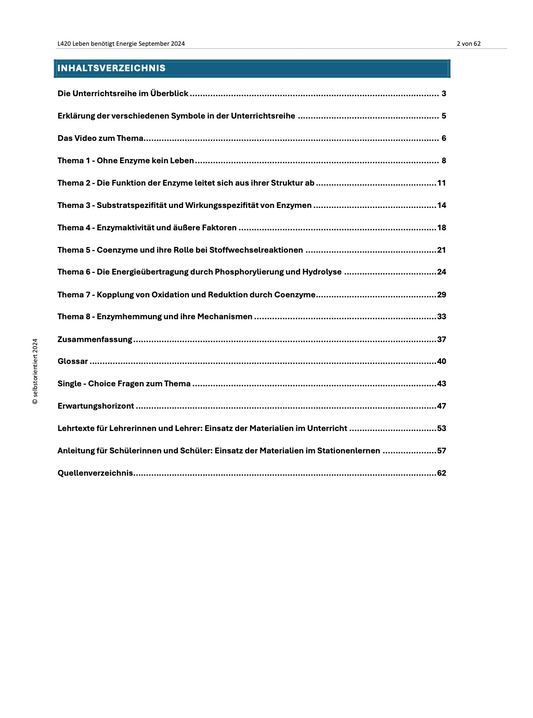 Enzyme und Stoffwechsel - Unterrichtsmaterial