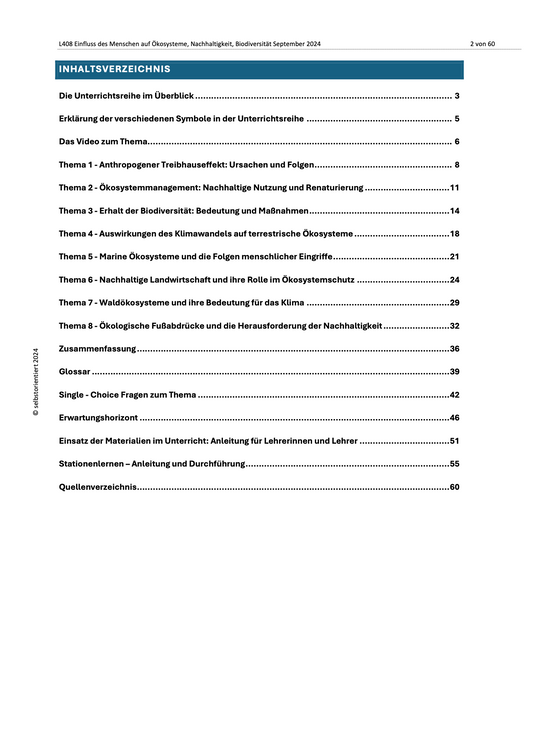 Einfluss des Menschen auf Ökosysteme, Nachhaltigkeit und Biodiversität - Unterrichtsmaterial