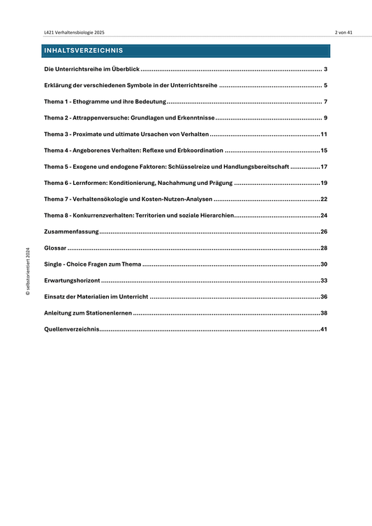 Ethogramme, Lernformen, Verhaltensökologie oder Konkurrenzverhalten - Unterrichtsreihe