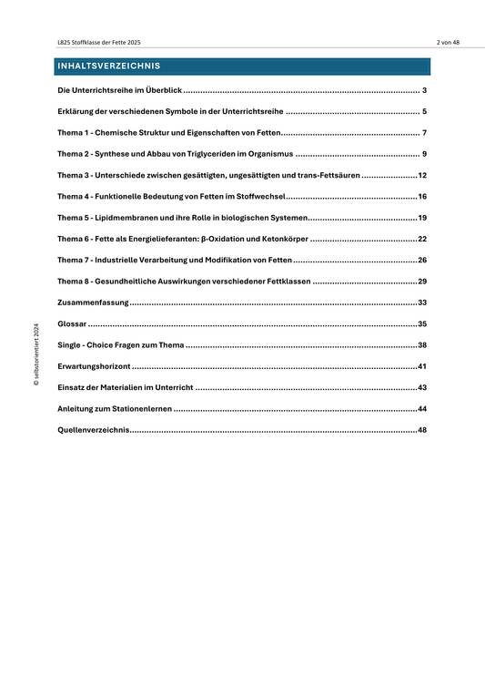Stoffklasse der Fette - Unterrichtsmaterial im Fach Chemie