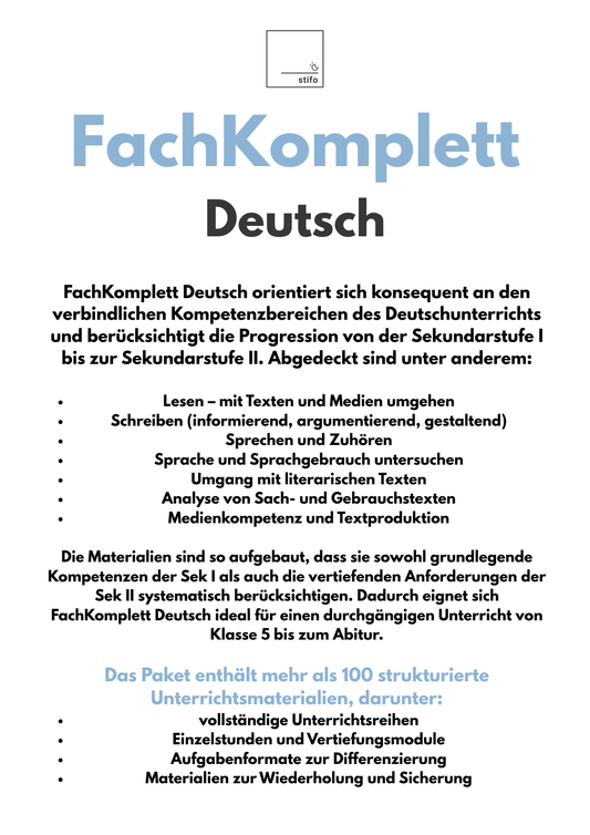 FachKomplett Premium Deutsch – 300+ Unterrichtsreihen, Klausuren & Teach-Life-Balance