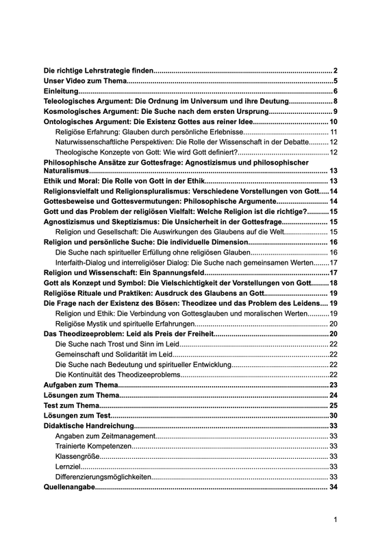 Unterrichtsmaterial: Die Frage nach der Existenz Gottes (Texte | Aufgaben | Test)