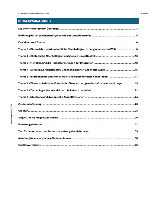 Unterrichtsreihe: Globalisierung – Soziale, ökologische und wirtschaftliche Nachhaltigkeit