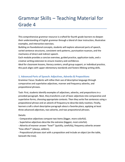 Englisch Klasse 4 – Grammatikpaket: Satzbau, Zeiten & Zeichensetzung