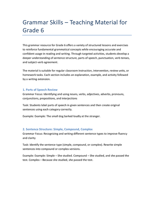 Englisch Klasse 6 – Grammatiktraining: Satzarten & Wortarten üben