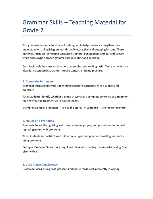 Englisch Grammatik Klasse 2 – Satzbau, Nomen, Verben & Zeichensetzung