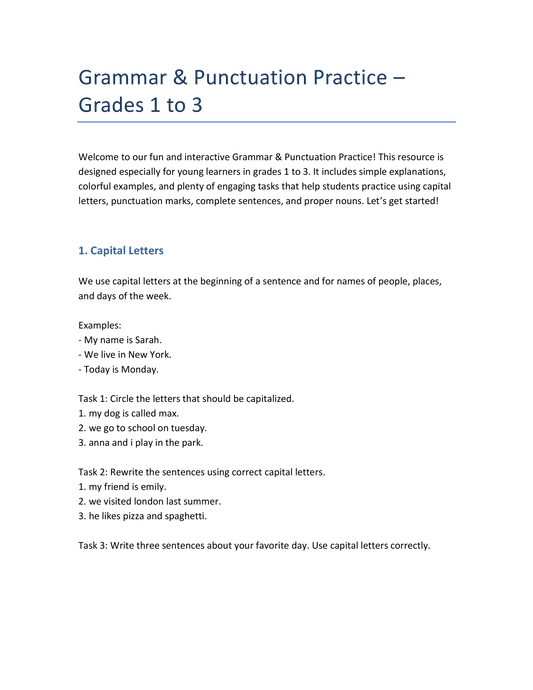 Englisch Klasse 1–3 – Grammar & Punctuation: Übungspaket mit Aufgaben