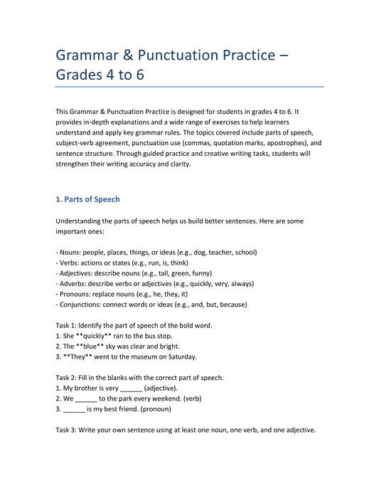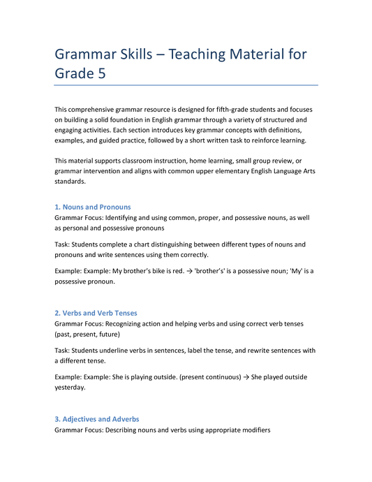 Englisch Klasse 5 – Grammatiktraining: Wortarten, Satzarten & Zeichensetzung