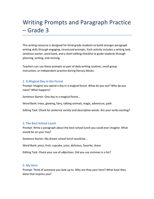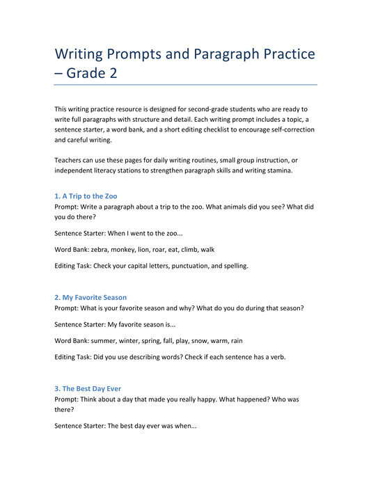 Englisch Klasse 2 – Writing Prompts: Schreibimpulse mit Satzstartern