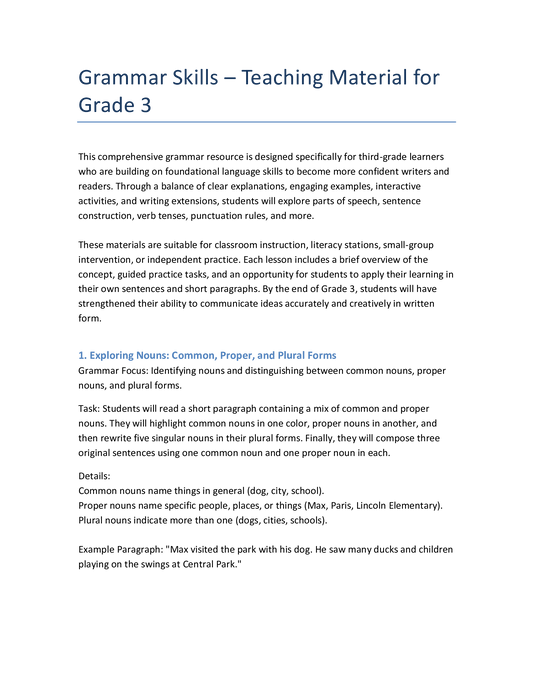 Englisch Klasse 3 – Grammatiktraining zu Nomen, Pronomen & Satzbau