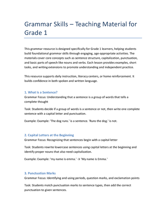 Englisch Grammatik Klasse 1 – Satzbildung, Nomen, Verben & Satzzeichen