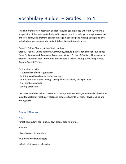Kostenloses Vokabelpaket Englisch – Klasse 1–4 | 4 Themen je Stufe