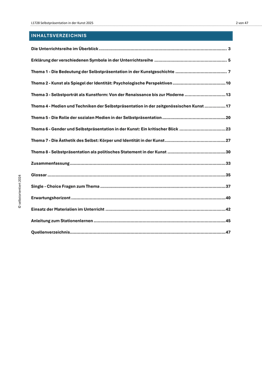 Selbstpräsentation in der Kunst - Unterrichtsreihe SEK II