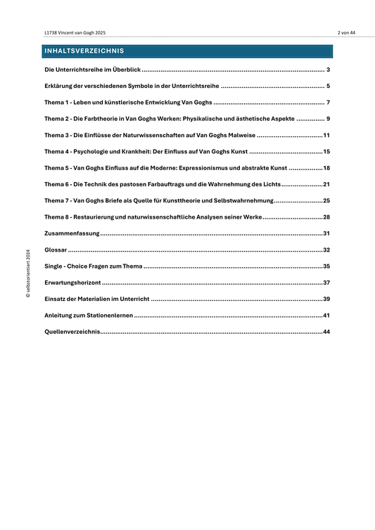 Vincent Van Gogh: Sternennacht & Sonnenblumen - Unterrichtsreihe