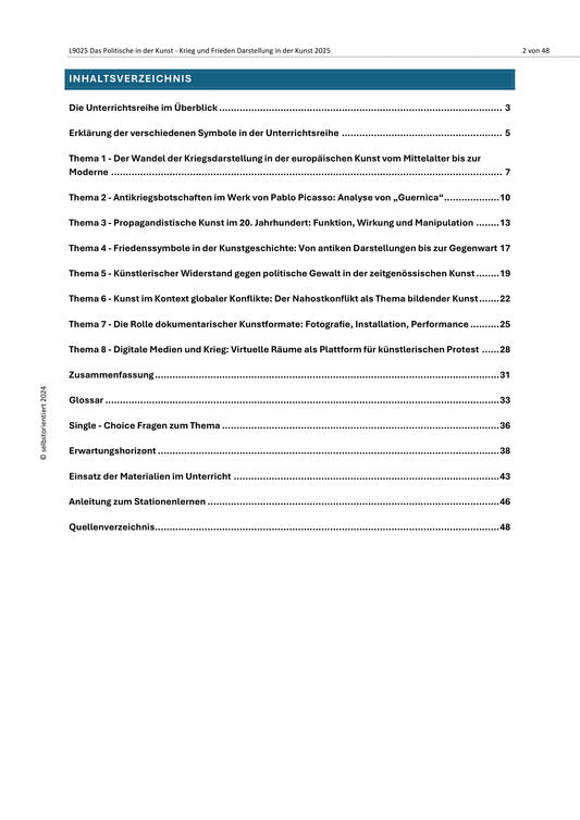 Unterrichtsreihe Kunst: Das Politische – Krieg & Frieden in der Kunst
