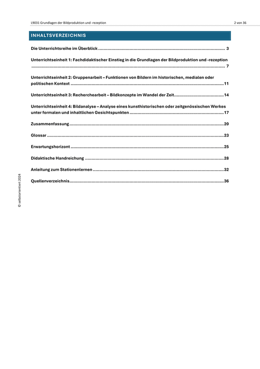 Unterrichtsreihe Kunst: Grundlagen der Bildproduktion & -rezeption