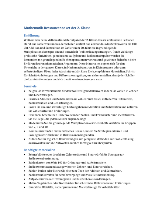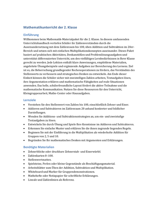 Mathe-Reise Klasse 2 – Zahlenraum bis 100 & Rechenabenteuer