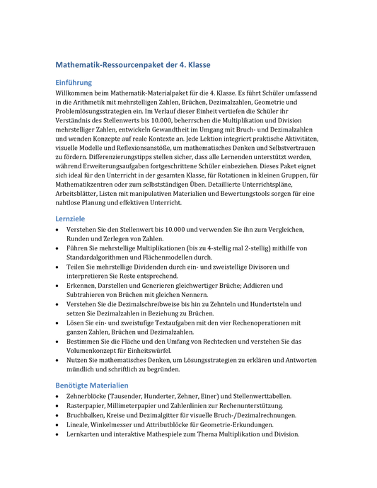 Kostenloses Mathe-Komplettpaket – Zahlenräume Klasse 1–4