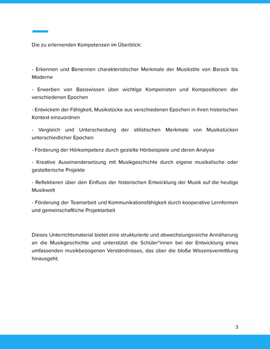 Abriss der Musikgeschichte von Barock bis Moderne – Unterrichtsmaterial Sekundarstufe