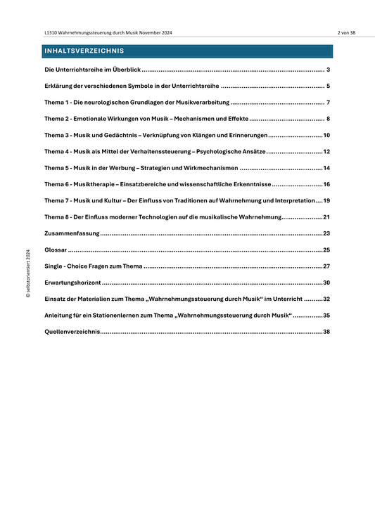 Wahrnehmungssteuerung durch Musik - Unterrichtsreihe