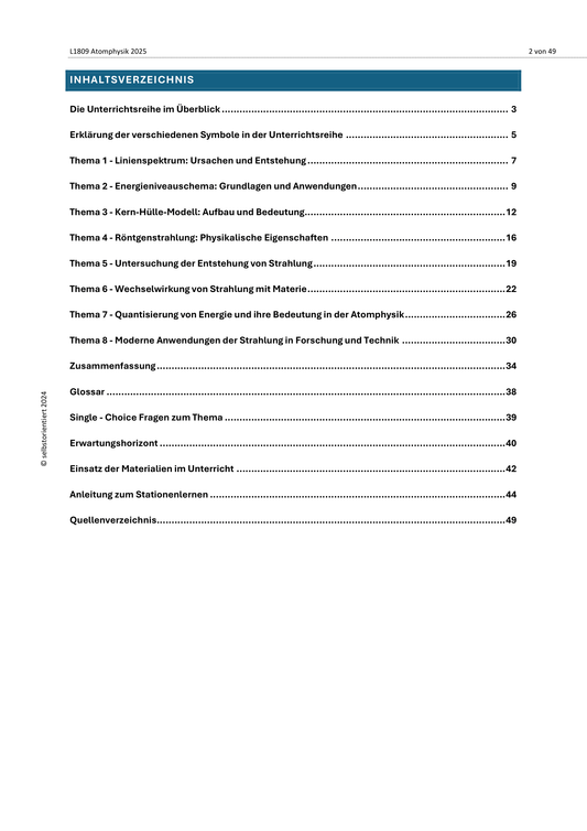 Atomaufbau, Quantenmechanik, Röntgenstrahlung | Unterrichtsreihe