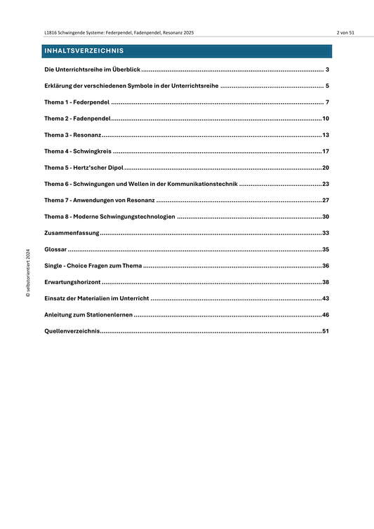 Schwingungen und Resonanz | Schwingungstheorie - Unterrichtsreihe