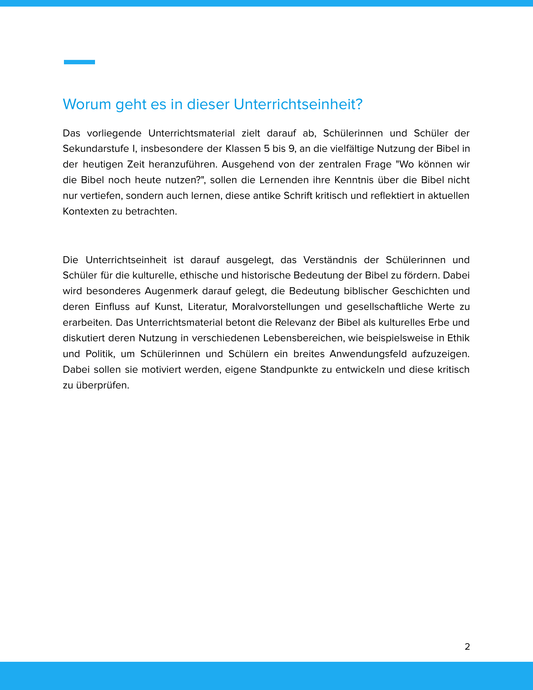 Unterrichtsmaterial „Wo können wir die Bibel noch heute nutzen?“ (Sek I)