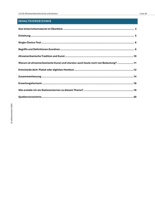Unterrichtsreihe: Harlem Renaissance - SEK I