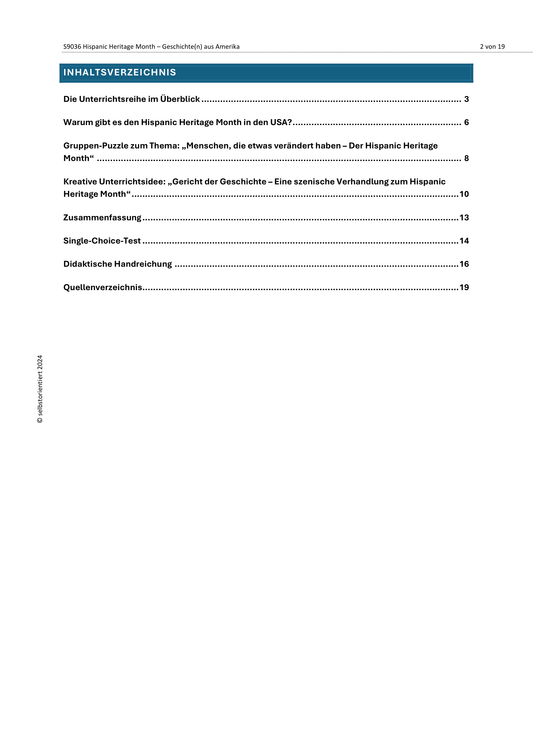 Hispanic Heritage Month – Geschichte(n) aus Amerika - Unterrichtsreihe SEK I