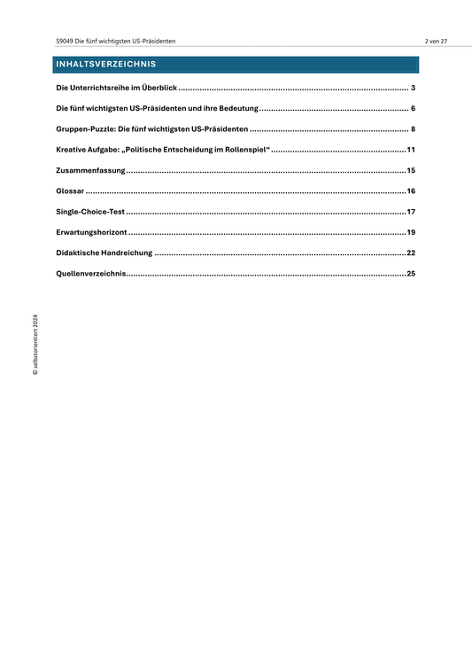 Fünf bedeutende US-Präsidenten – Unterrichtsmaterial für die SEK I Geschichte
