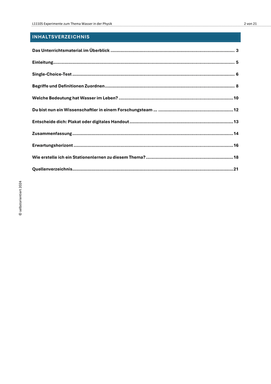 Experimente zum Thema Wasser in der Physik - SEK I
