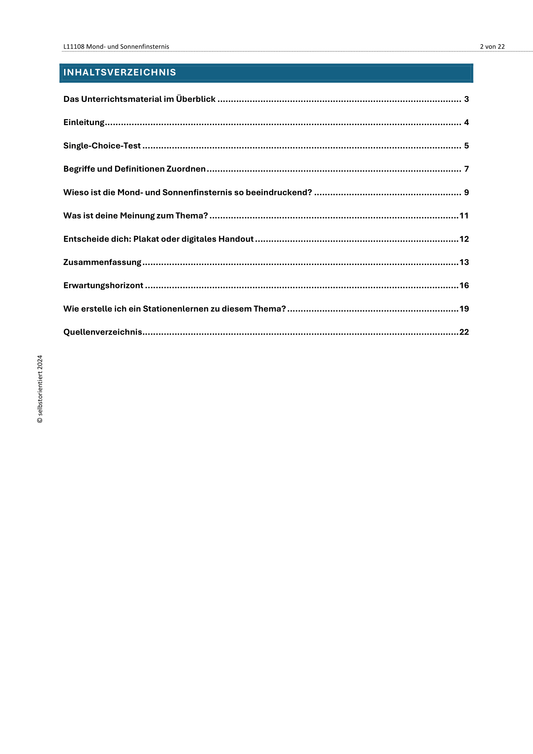 Unterrichtsreihe: Mond- und Sonnenfinsternis - SEK I