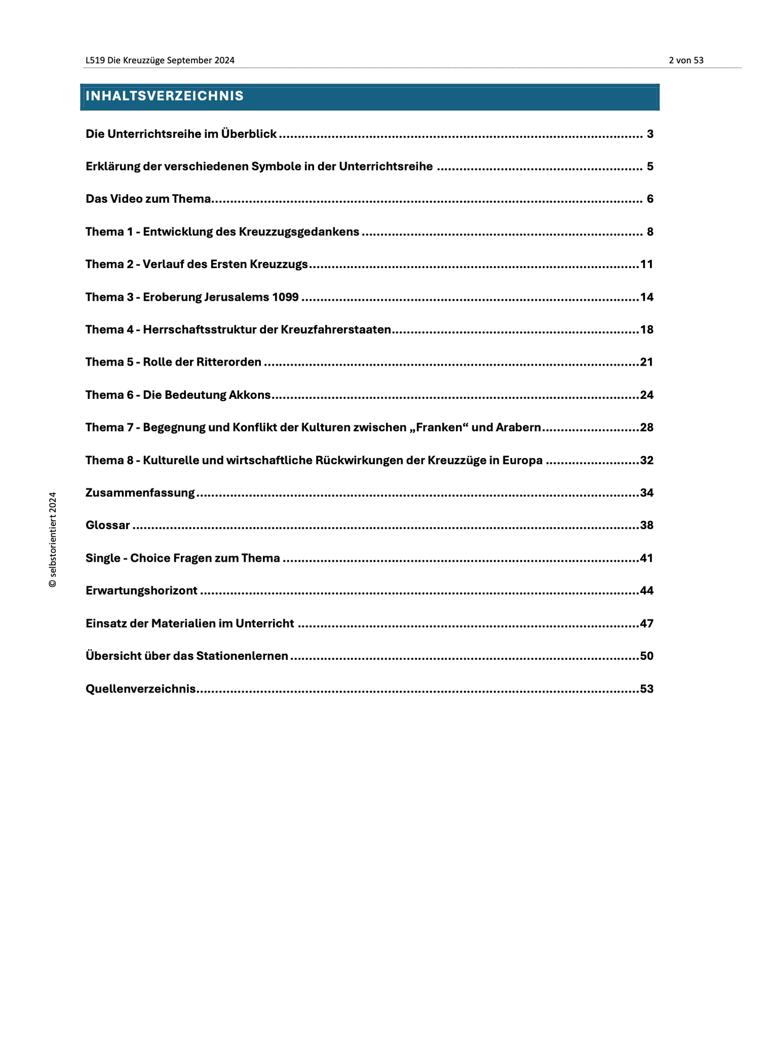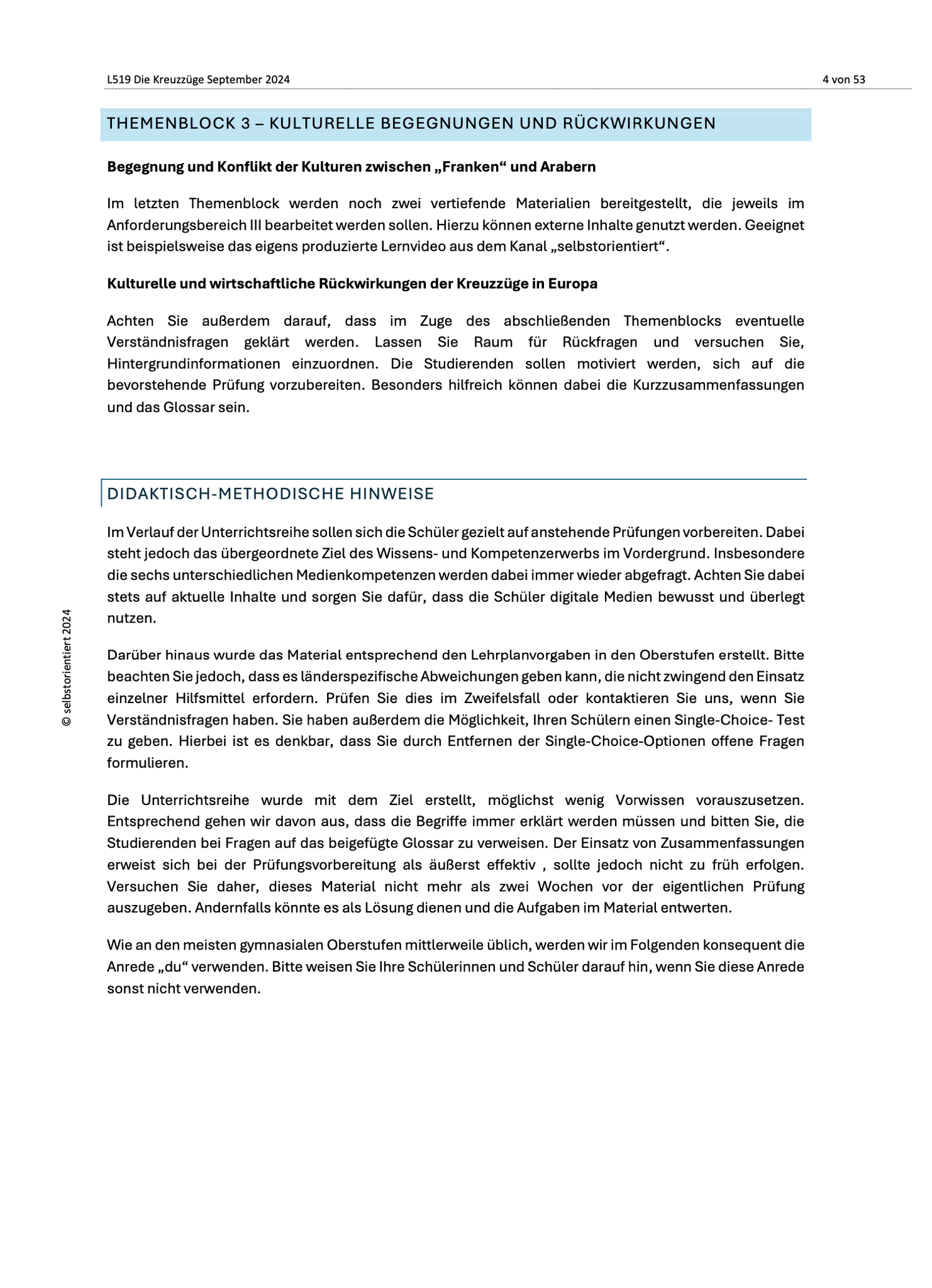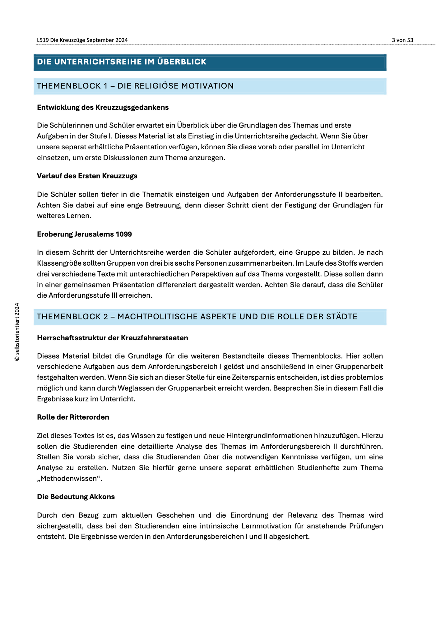 • Ausführliche Lehrertexte: Detaillierte Texte zu jedem wichtigen Thema der Kreuzzüge, die Sie direkt im Unterricht verwenden können.